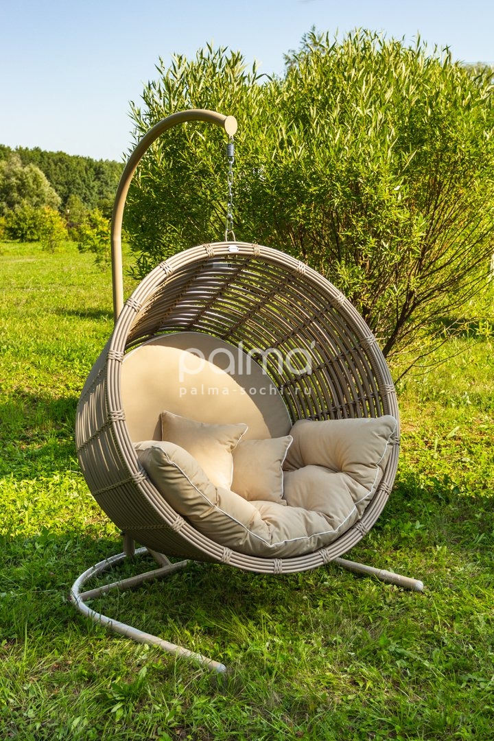Современное дизайнерское кресло станет стильным украшением вашего дома, террасы или сада. Кресло САНТОРИНИ - наслаждение отдыхом! Модель выполнена из экоротанга, дополнена подушками со съемными чехлами. Подвесное кресло можно крепить двумя способами: к потолку или к металлической стойке.